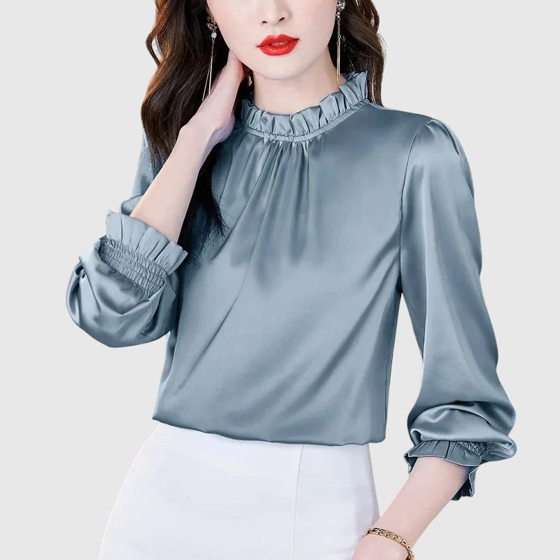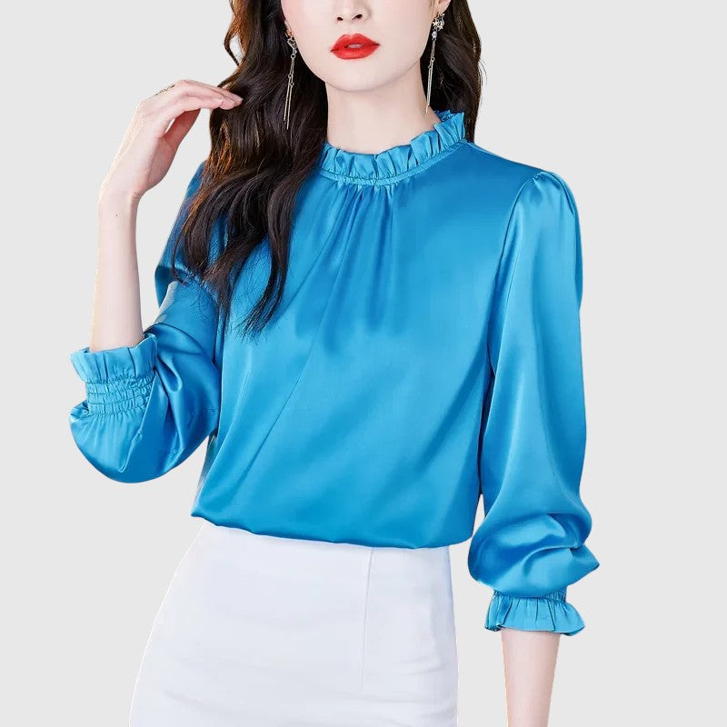 Fedezze fel a kifinomultságot minden részletben. Ez a blúz luxus textúrát ötvöz tökéletes kivitelezéssel, egy darabot, amely azonnal feldobja valamelyik outfitet.