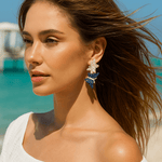 Emma | Gli orecchini a farfalla emanano la bellezza senza tempo dell'artigianato e il lusso discreto. Realizzati a mano con estetica scandinava, due piccole farfalle si uniscono in un'elegante armonia: la parte superiore brilla di cristalli bianchi, mentre la parte inferiore è adornata da pietre blu e scure. La costruzione dorata aggiunge calore e raffinatezza, conferendo agli orecchini una finitura nobile che rende Emma una firma sofisticata per occasioni speciali e aggiunge un tocco discreto alla vita quotidiana. La produzione limitata garantisce un carattere unico e un valore da collezione che può crescere nel tempo.