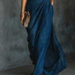 Egy kifinomult, hosszú ruha, amely pamut ésvászon keverékből készült, elegáns stílusú különböző alkalmakra megfelelő.