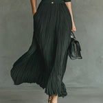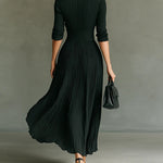 Elvira | Hosszú, pliszírozott ruha, hajtókával és magas derékkal