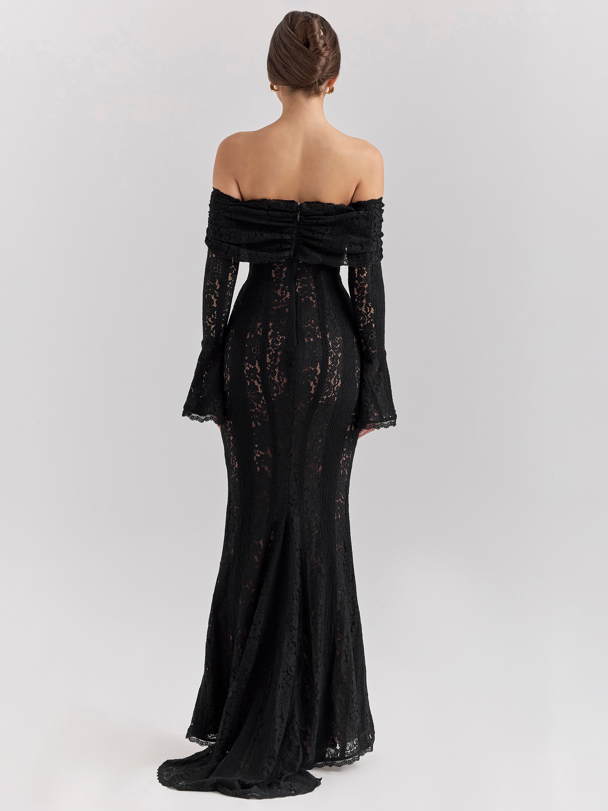 Néhány ruha nyilatkozatot tesz, de Alessandra felejthetetlen benyomást kelt. Rugalmas virágos csipkéből készült , ez a ruha tökéletesen öleli körül a formáidat , kontrasztos béléssel a figyelemfelkeltő hatás érdekében. Az off-shoulder fűzőtámogatást nyújt , míg a divatos mandzsetták stílusát adnak hozzá. A folyékony harangszoknya drámai, vörös szőnyeg hatást kölcsönöz a megjelenésnek, valamint a kényelmes illeszkedést biztosít. Tökéletes gálákra, esküvőkre, dress code-ot igénylő eseményekre, ünnepi partea és romantikus találkozókra.