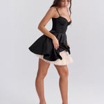 Minden hónapban létrehoztam a Selene mini verzióját. A fűző megerősített, hogy tökéletesen kiemelje a derekat , és egy aranyos szív alakú dekoltázzsal rendelkezik drótos mellbőséggel . A finam péntok állíthatók a tökéletesítés érdekében, és a ' Selene ' minden a légies mini szoknyáról szól, a legpuhább tüll bőséges rétegei díszítenek, hogy szép formát tartson.