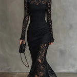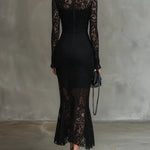 Veronica™ | Fekete csipkés maxiruha