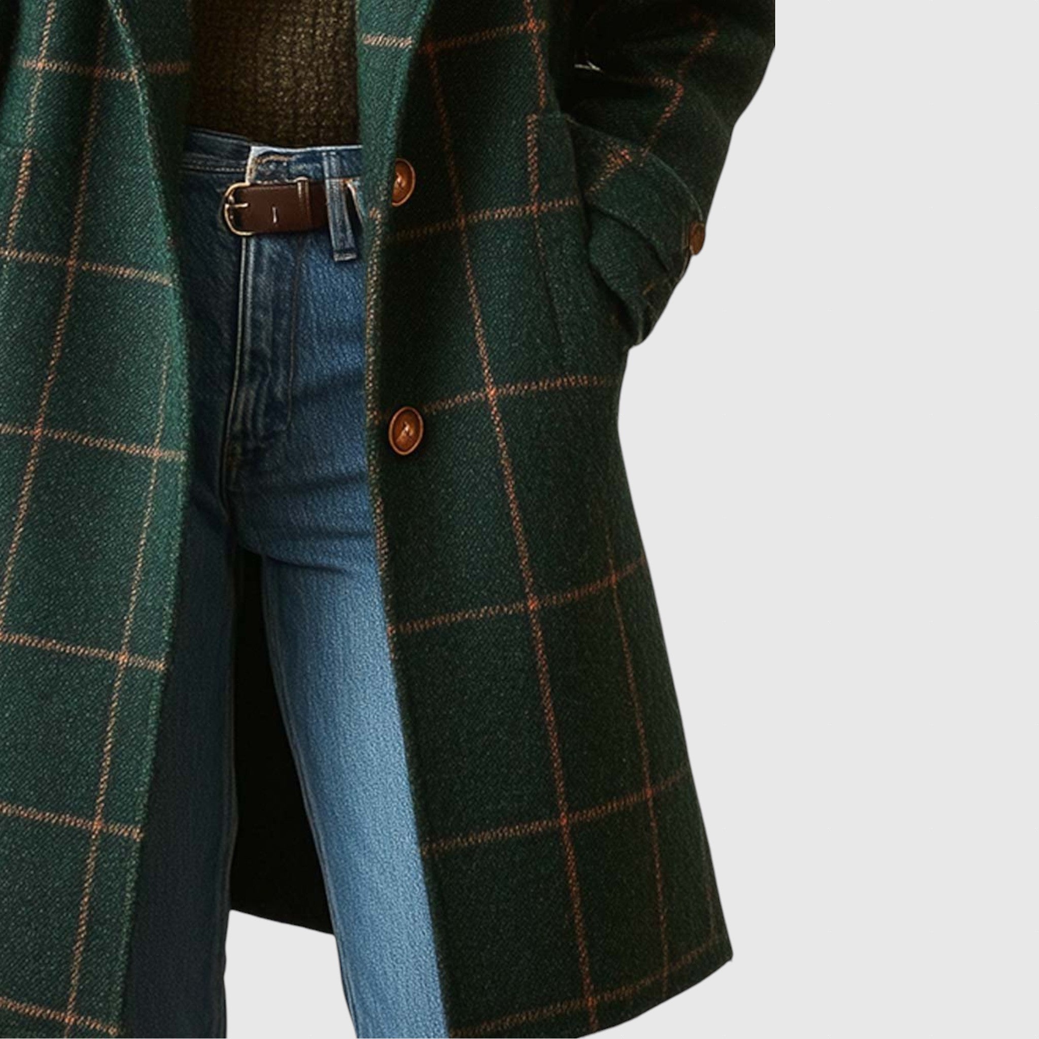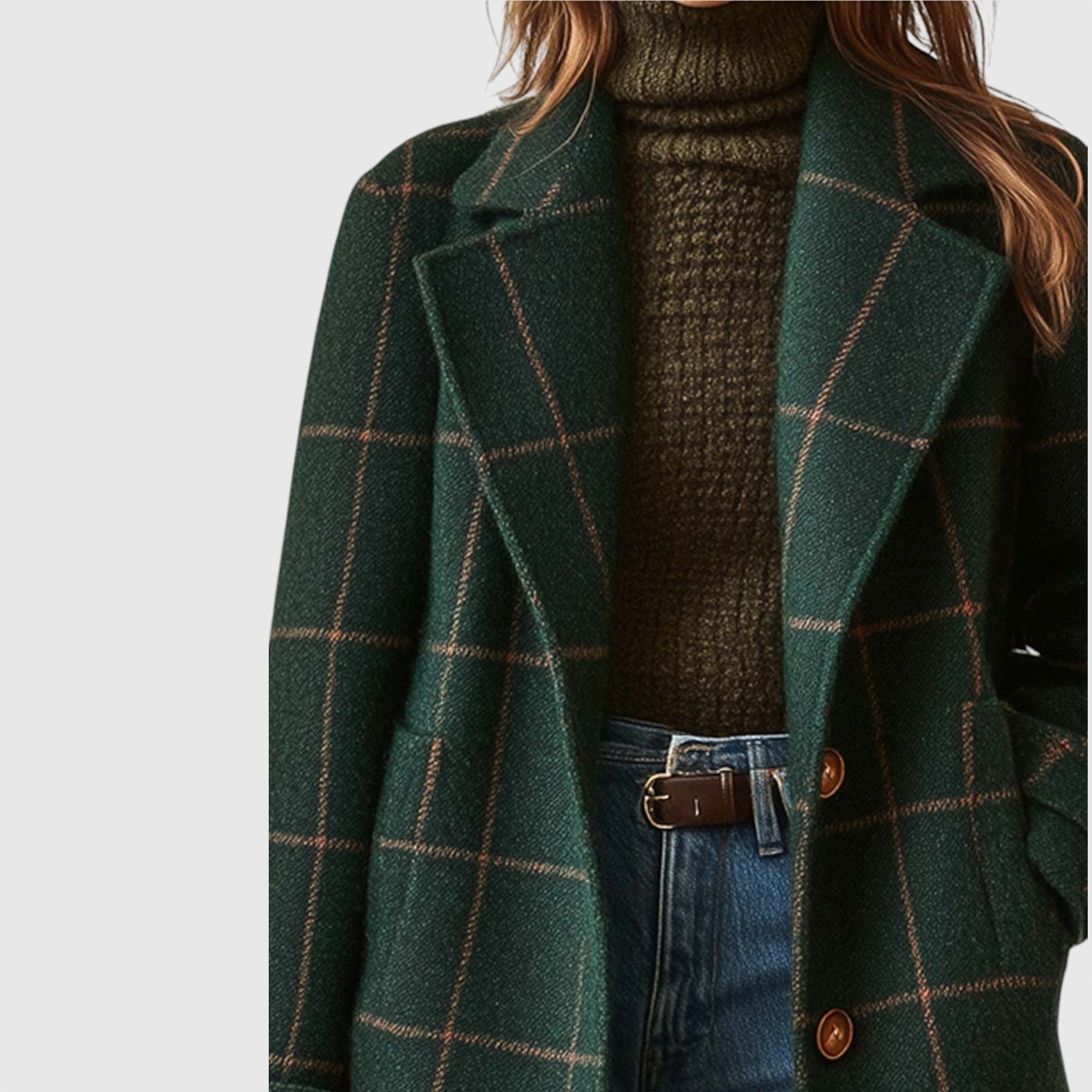 Női retro kabát gallérral és kockás mintával — időtlen, nyugodt, megkérdőjelezhetetlenül te.