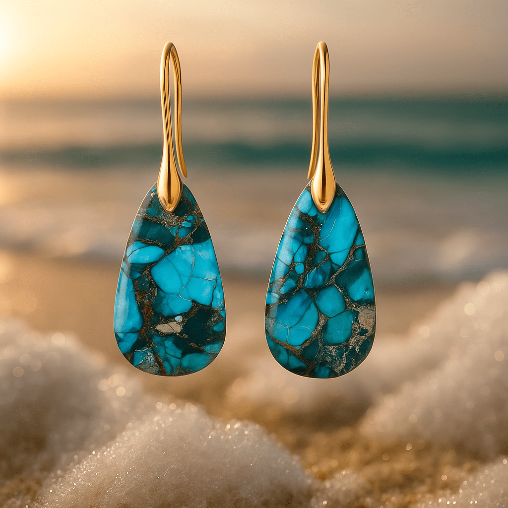 • Pietre turchesi naturali con un motivo unico e venature organiche, rendendo ogni paio completamente unico.