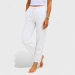 A Klara nadrág prémium lenvászon anyagot ötvöz hogy stretch hatással, amely lehetővé teszi, alkalmazkodjon minden mozdulathoz. A laza, de kedves sziluett, látványos derék részletel tökéletes választás munkanapokra, kertészeti brunch-ra vagy hétvégi piknikre.