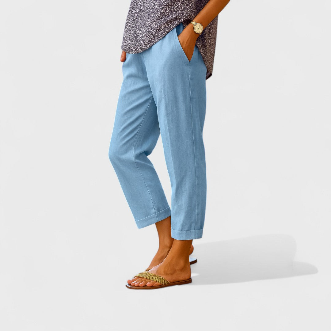 Az Otúlie nadrágok a természetes anyagok kényelmét ötvözik egy elegáns szabással, amely minden outfithez illik. A kényelmes szabás, a lélegző anyag és az időtlen dizájn garantálja, hogy stílusosan nezzen ki még a magas hőmérsékleten is – mindezt a kényelem feláldozása nélkül.