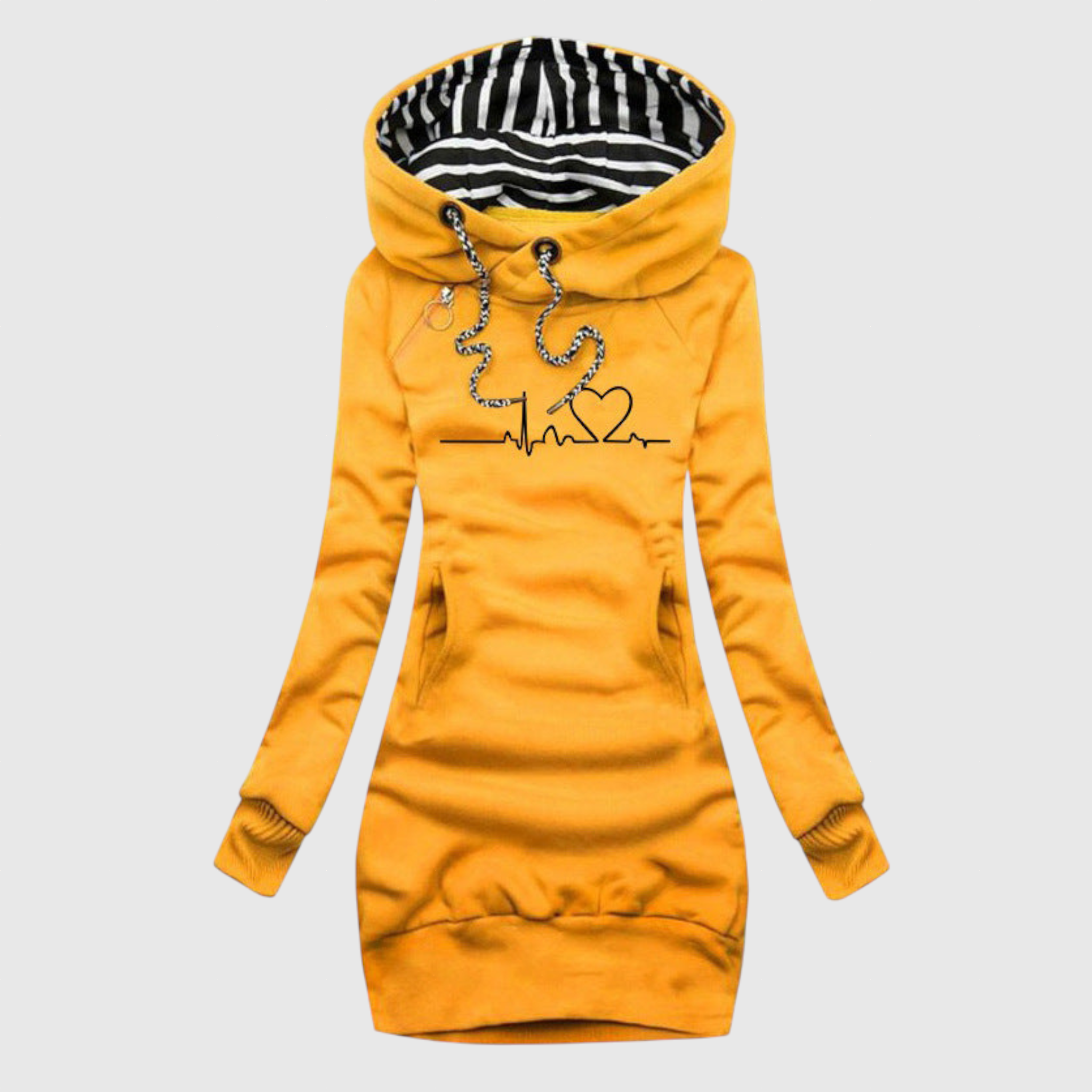 Lépj be a télbe a stílus és a kényelem tökéletes kombinációjával – a Kristina pulóverruhával! Modern szív mintájával ez a sikkes dizájn eleganciát and a ruhatáradhoz. Akár bulizni mész, akár egy pihentető estét töltesz otthon, ez a sokoldalú pulóverruha az elsőválasztásod a melegség és a kifinomultság érdekében.