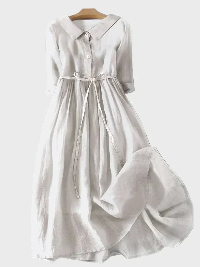 Fedezze fel a kék ruhát , amely nyugalmat és elegáns áraszt, tökéletes bármilyen alkalomra. Az szabásának praktikus és időtlen stílusát kínálja, míg egyszerű a derékpánt kiemeli a nőies sziluettet és lehetővé teszi az anyag természetes mozgását.