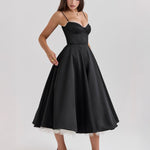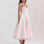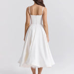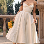 A fényes duchess szaténból készült ' Selene ' midi ruhánk az, amiről az álmok szólnak. A fűző tökéletesen megerősített a derék karcsúsításához , egy aranyos szív alakú dekoltázs található benne, drótos kosarakkal. A finam pantok állíthatók a készült tökéletes illeszkedés érdekében, míg ' Selene ' légies midi szoknyára, amely a legpuha tüllből dús réteggel van ellátva, kiemelkedő megjelenést biztosítva, amely szépen megőrzi formát.