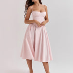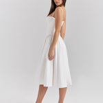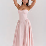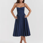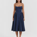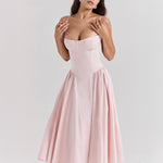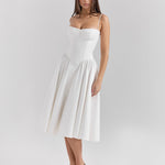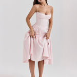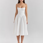 A ' Francesca ' ruhánk a nyár elengedhetetlen darabja. Légáteresztő twill anyagból készült, a fűzőnél megerősített, hogy karcsúsítsa a derekat , és szív alakú dekoltázzsal rendelkeziktámogatószivacsos mellekhez . A szinte láttok állíthatók a tökéletes illeszkedés érdekében, és imádjuk, ahogy a fodor gyönyörű volumet ad a midi szoknyának.