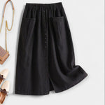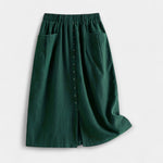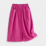 Természetes textúra és diszkrét stílus egy szoknyában, amely ötvözi a retro bájt a mindennapi praktikummal. A magas derék női sziluetthez illeszkedik, míg az elülső zsebek kényelmes és funkcionalitást kínálnak.
