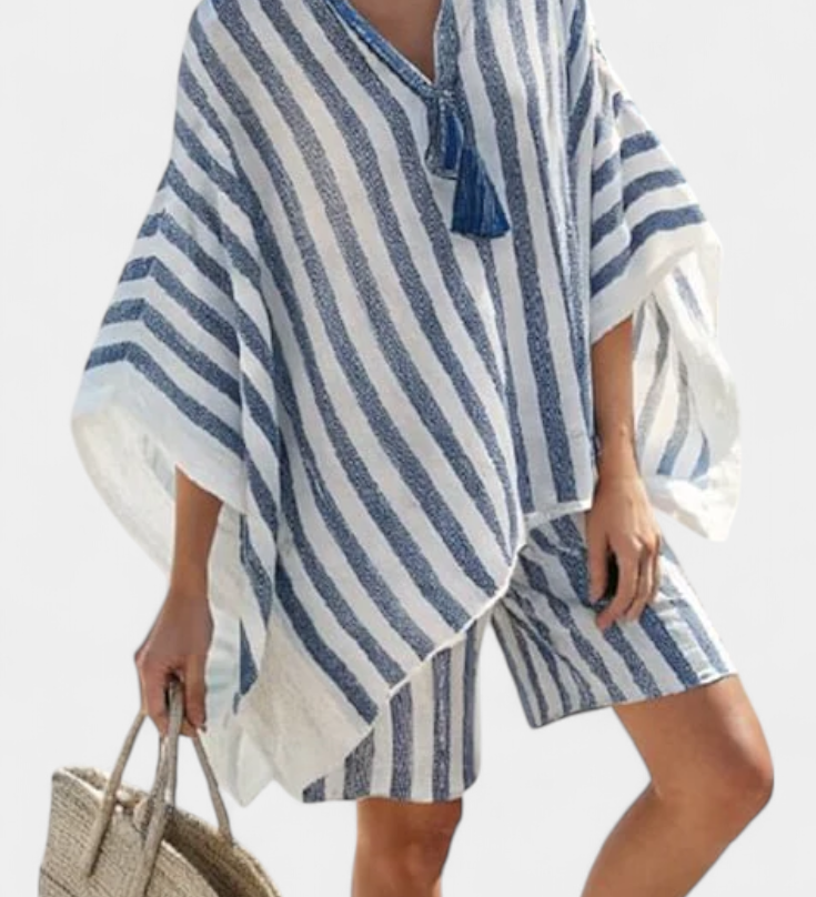 Nancy csíkos szett oversized polóval és elegáns sorttal