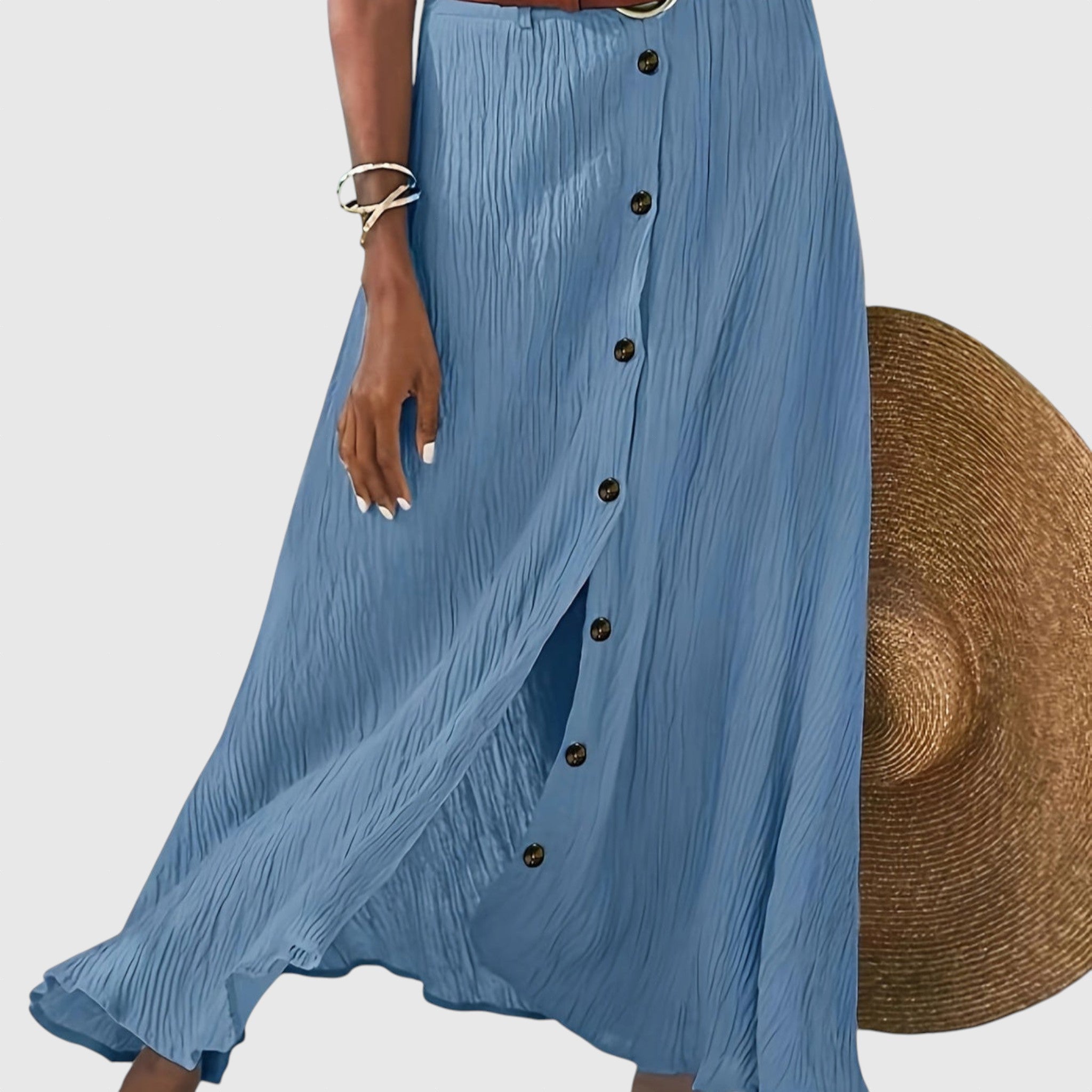 Könnyed és elegáns, ez a szoknya diszkrét nőiességet sugároz, és rugalmasságot kínál bármilyen alkalomra. Félátlátszó anyagával és elöl gombokkal reggeltől estig viselhető a megfelelő stílusban.
