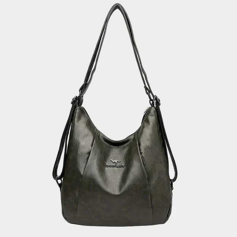Elegáns és praktikus hátizsák meleg barna színben, ideális nők számára, akik stílust és funkcionalitást keresnek a mindennapjaikban. Magas minőségű öko bőrből készült, tartósságot és modern megjelenést kínál. Egyedi háromszög alakja kiemelkedővé teszi, míg a számos cipzáras külső zseb könnyű hozzáférést és a szükséges tárgyak rendezését biztosítja. Kényelmes és állítható vállpántokkal rendelkezik a kényelmes viselet érdekében egész nap.