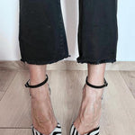 A zebra mintás kisboka pánttal rendelkező cipő az egyik legkedveltebb modell azok számára, akik eleganciával szeretnének kitűnni. A széles sarok stabilitást biztosít, míg az állatminta felhívja a figyelmet és minden lépést egyedivé tesz. Tökéletes különleges alkalmakra, vagy hogy egy napi öltözéket személyiséggel gazdagítson.