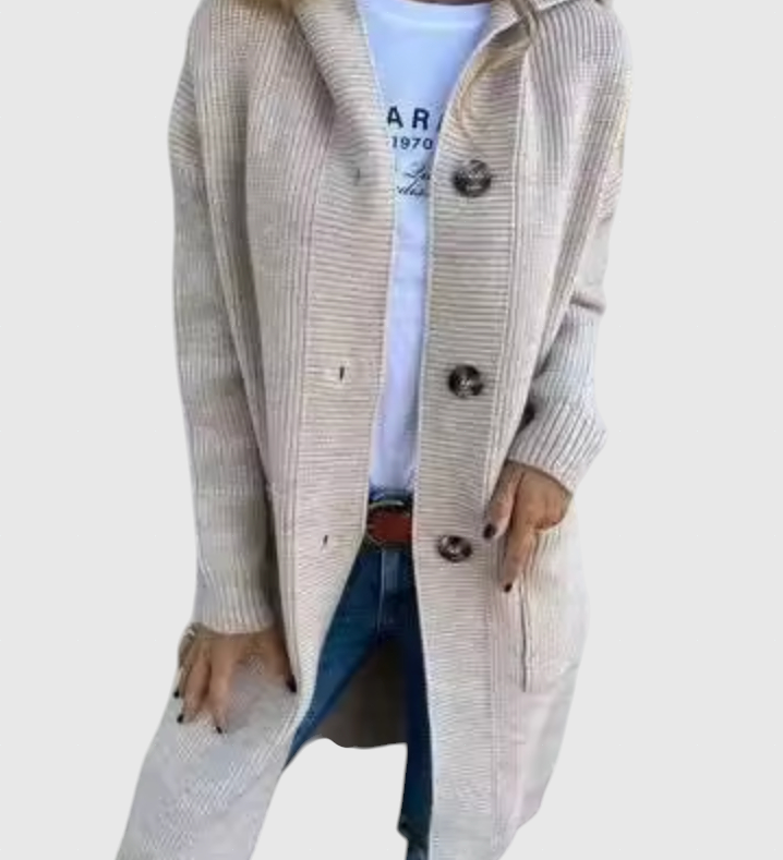 Gizel – Hosszú kötött kabát kapucnival