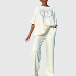 Fedezze fel ezt a kényelmes két részes szettet, amely egyszínű blúzt kombinál széles nadrággal, ötvözve a kényelmet és a stílust. Az időtlen dizájn lehetővé teszi a szett viselését az év bármely szakában – akár külön-külön, akár együtt.