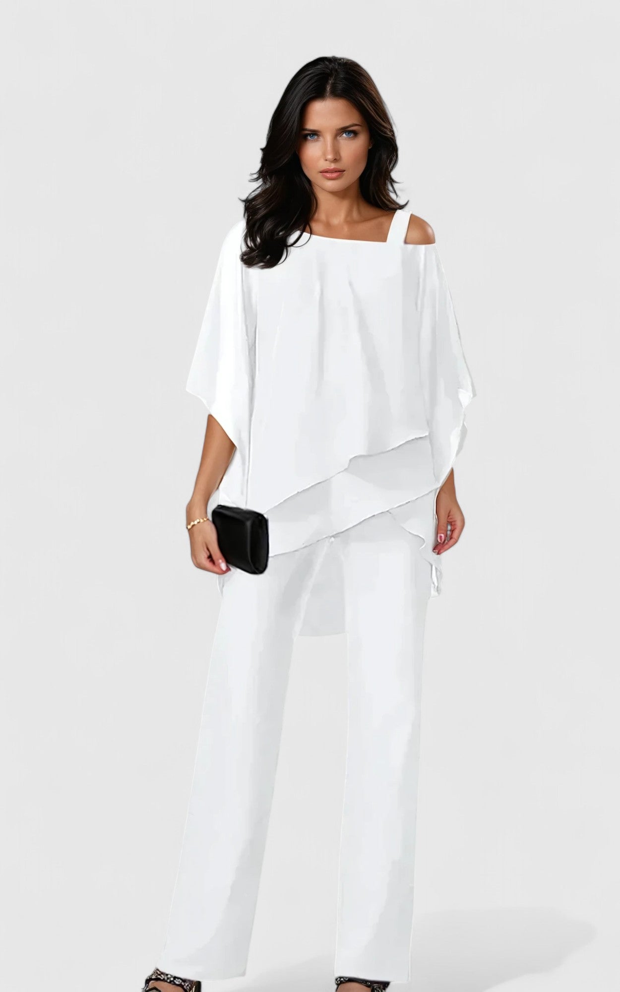 • Felső: Aszimmetrikus rétegezett design nyitott vállakkal