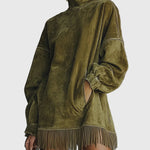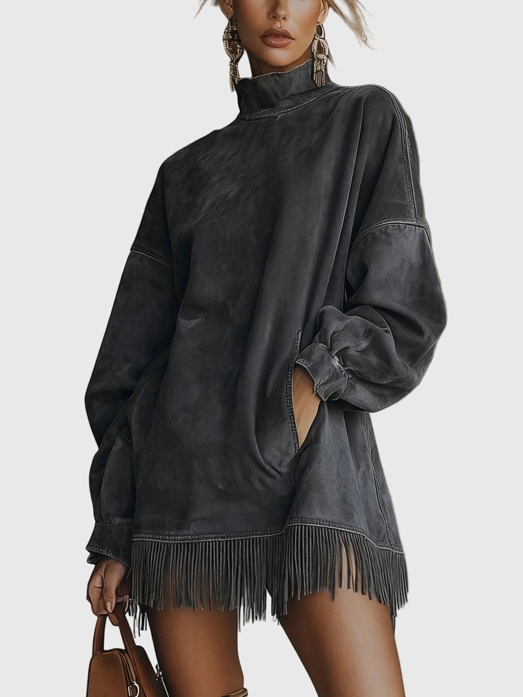 Lépj be a könnyed elegancia világába a Sheri – Kényelmes Frufru Ruhával — ahol a puha kényelem találkozik a modern, nyugati ihletésű stílussal.