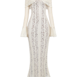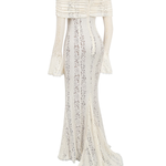Néhány ruha nyilatkozatot tesz, de Alessandra felejthetetlen benyomást kelt. Rugalmas virágos csipkéből készült, ez a ruha tökéletesen kiemeli az alakodat, kontrasztos béléssel a figyelemfelkeltő hatás érdekében. Az off-shoulder fűző támogatást nyújt, míg a harangujjak stílust adnak hozzá. A fodros szoknya drámai, vörös szőnyeg hatást kölcsönöz a megjelenésnek, miközben kényelmes illeszkedést biztosít. Tökéletes gálákra, esküvőkre, ünnepi eseményekre, ünnepi bulikra és romantikus találkozókra.