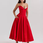 'Amalfi' egyszerűen a RUHA a különleges alkalmaidra ebben a szezonban. Nőies, stílusos, valóban egy ikon. 65%-ban Lyocellből készült, egy természetes rost, amely ismert puha és lélegző tulajdonságairól. A szobrászati architektúrájú fűző tökéletesen megerősített, hogy kihúzza a derekadat, és kontrasztban áll a dús, nőies, voluminózus szoknyával.