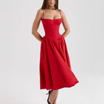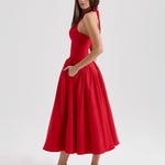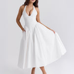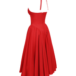 Néhány ruha felhívja a figyelmet, de Monroe megállítja az időt. A hollywoodi vintage eleganciájából inspirálódva, ez a nyári olasz ruha ötvözi a glamúrt egy romantikus érzéssel. A dekoltázs, amely kiemeli a formákat, a hátnál kötődik, így tökéletes és kényelmes illeszkedést biztosít. Gazdag bársonyos anyagból készült, a strukturált fűző javítja a sziluettet, míg a tüll midi szoknya könnyedén mozog. Párosítsd magassarkúval egy elegáns estéhez, vagy lapos cipővel egy csinos nyaralós megjelenéshez.